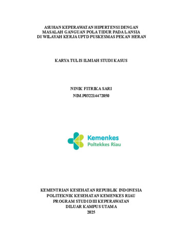 Ninik Fitrika Sari, P032214472050 (2025) ASUHAN KEPERAWATAN HIPERTENSI DENGAN MASALAH GANGUAN POLA TIDUR PADA LANSIA DI WILAYAH KERJA UPTD PUSKESMAS PEKAN HERAN. Diploma thesis, Poltekkes Kemenkes Riau.