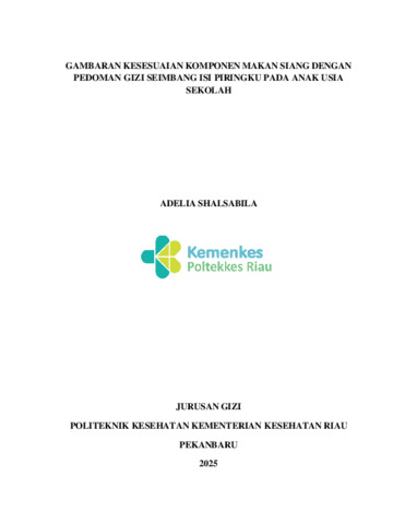 ADELIA SHALSABILA, P032213411001 (2025) GAMBARAN KESESUAIAN KOMPONEN MAKAN SIANG DENGAN PEDOMAN GIZI SEIMBANG ISI PIRINGKU PADA ANAK USIA SEKOLAH. Diploma thesis, Poltekkes Kemenkes Riau.