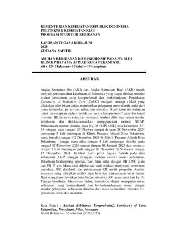 ZOFIANA SAFITRI, P032215401042 (2025) ASUHAN KEBIDANAN KOMPREHENSIF PADA NY. M DI KLINIK PRATAMA AFIYAH KOTA PEKANBARU. Diploma thesis, Poltekkes Kemenkes Riau.