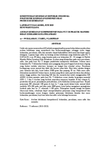RENI WAHYULIANA, P032215401032 (2025) ASUHAN KEBIDANAN KOMPREHENSIF PADA NY. Y DI PRAKTIK MANDIRI BIDAN ZURRAHMI KOTA PEKANBARU. Diploma thesis, Poltekkes Kemenkes Riau.