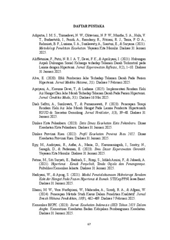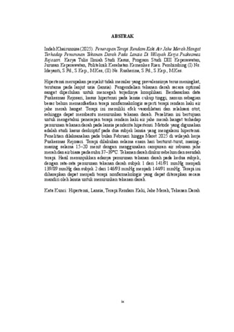 INDAH KHAIRUNNISA (2025) PENERAPAN TERAPI RENDAM KAKI AIR JAHE MERAH HANGAT TERHADAP PENURUNAN TEKANAN DARAH PADA LANSIA DI WILAYAH KERJA PUSKESMAS REJOSARI. Diploma thesis, Poltekkes Kemenkes Riau.
