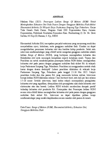 Kata Kunci: Range of Motion (ROM), Rheumatoid Arthritis, Kekuatan Otot,