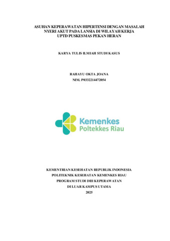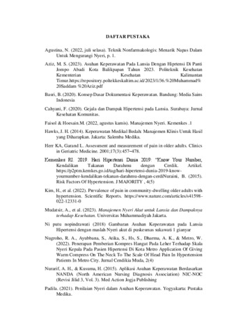 rahayu okta joana, P032214472054 (2025) ASUHAN KEPERAWATAN HIPERTENSI DENGAN MASALAH NYERI AKUT PADA LANSIA DI WILAYAH KERJA UPTD PUSKESMAS PEKAN HERAN. Diploma thesis, poltrkkrs kemenkes riau.