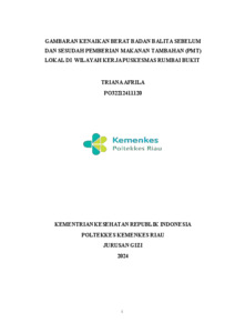 Triana Afrila, P032213411120 (2025) GAMBARAN KENAIKAN BERAT BADAN BALITA SEBELUM DAN SESUDAH PEMBERIAN MAKANAN TAMBAHAN (PMT) LOKAL DI WILAYAH KERJA PUSKESMAS RUMBAI BUKIT. Diploma thesis, Poltekkes Kemenkes Riau.