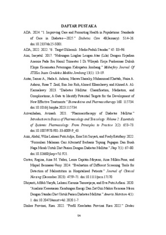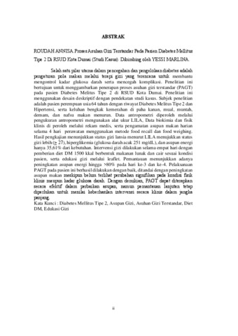 Kata Kunci : Diabetes Mellitus Tipe 2, Asupan Gizi, Asuhan Gizi Terstandar, Diet DM, Edukasi Gizi