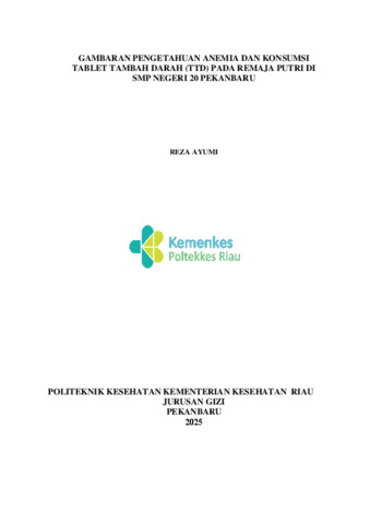 REZA AYUMI, P032213411070 (2025) GAMBARAN PENGETAHUAN ANEMIA DAN KONSUMSI TABLET TAMBAH DARAH (TTD) PADA REMAJA PUTRI DI SMP NEGERI 20 PEKANBARU. Diploma thesis, Poltekkes Kemenkes Riau.