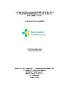 ANANDA AZHARRA, P032215401087 (2025) ASUHAN KEBIDANAN KOMPREHENSIF PADA NY. D DI PMB ISLAH WAHYUNI KOTA PEKANBARU. Diploma thesis, Poltekkes Kemenkes Riau.