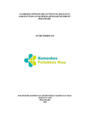 Putri Febriyani (2025).Gambaran Pengetahuan Tentang Kegiatan Sarapan Pada Anak Sekolah Dasar Negeri 027 Pekanbaru,Laporan Tugas Akhir ,Program Studi D-III Gizi,Jurusan Gizi,Polteknik Kesehatan Kemenkes Riau, Pembimbing Yessi Marlina, S.Gz., MPH., Dietisien.