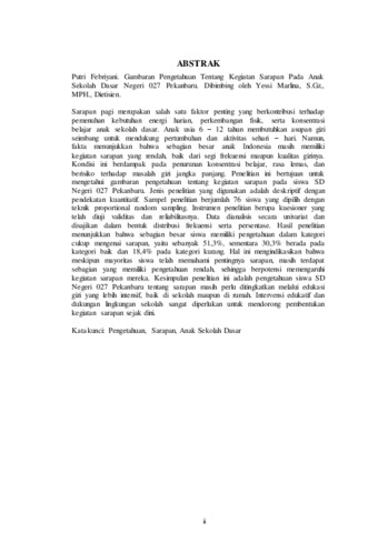 Kata kunci: Pengetahuan, Sarapan, Anak Sekolah Dasar